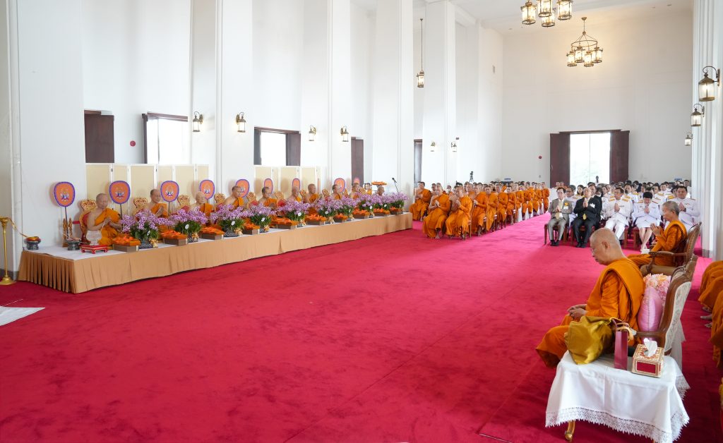 อนึ่ง ในช่วงเช้า สมเด็จพระอริยวงศาคตญาณ (อมฺพรมหาเถร) สมเด็จพระสังฆราช สกลมหาสังฆปริณายก นายกสภามหาวิทยาลัยมหามกุฏราชวิทยาลัย มีพระบัญชาโปรดให้ สมเด็จพระมหาวีรวงศ์ (อคฺคชินเถร) อุปนายกสภามหาวิทยาลัยมหามกุฏราชวิทยาลัย เป็นผู้แทนพระองค์มาในพิธีบำเพ็ญกุศลทักษิณานุปทานอุทิศถวายบูรพาจารย์ และพิธีเจริญพระพุทธมนต์ในโอกาสวันสถาปนามหาวิทยาลัยมหามกุฏราชวิทยาลัย ปีที่ ๑๓๒ โดยมี พระธรรมวชิรจินดาภรณ์, รศ.ดร. อธิการบดีมหาวิทยาลัยมหามกุฏราชวิทยาลัย กล่าวถวายรายงาน พร้อมประทานคำสั่งสภามหาวิทยาลัยมหามกุฏราชวิทยาลัยและคำสั่งมหาวิทยาลัย แต่งตั้งรองอธิการบดี ผู้ทรงคุณวุฒิ ผู้ช่วยอธิการบดี และตำแหน่งทางวิชาการ อีกทั้งยังประทานทุนการศึกษาแก่นักศึกษาระดับปริญญาตรี และประทานสัมโมทนียกถา ณ อาคารธรรมสถาน มหาวิทยาลัยมหามกุฏราชวิทยาลัย ตำบลศาลายา อำเภอพุทธมณฑล จังหวัดนครปฐม
