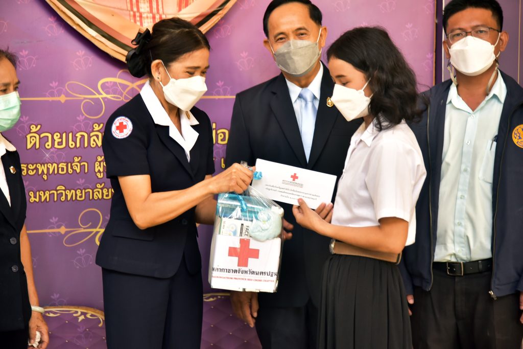 ทั้งนี้นายกเหล่ากาชาดจังหวัดนครปฐม และคณะกรรมการเหล่ากาชาด ได้กรุณาสอบถามรายละเอียดเกี่ยวกับการเรียนของนักศึกษา ซึ่งได้แสเดงความยินดีพร้อมทั้งให้คำแนะนำ และกล่าวชื่นชมนักศึกษา มมร ที่ได้รับทุนนักเรียนในพระราชานุเคราะห์ สมเด็จพระกนิษฐาธิราชเจ้า กรมสมเด็จพระเทพรัตนราชสุดาฯ สยามบรมราชกุมารี ในโอกาสนี้ด้วย