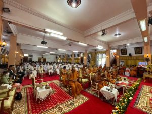 พร้อมกันนี้ได้จัดให้มีพิธีเจริญพระพุทธมนต์เพื่อถวายเป็นพระกุศลแด่สมเด็จพระอริยวงศาคตญาณ สมเด็จพระสังฆราช สกลมหาสังฆปริณายก โดยมี ผู้บริหาร คณาจารย์ เจ้าหน้าที่ นักศึกษา หน่วยงานราชการ สถาบันต่าง ๆ และประชาชนทั่วไป เข้าร่วมกิจกรรมจำนวนกว่า ๓๐๐ รูป/คน ณ วัดพระมหาธาตุวรมหาวิหาร ตำบลในเมือง อำเภอเมืองนครศรีธรรมราช จังหวัดนครศรีธรรมราช